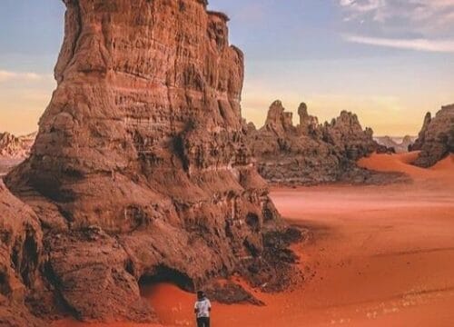 Część saharyjskiej pustyni przy granicy Algierii i Libii – pustynia Tadrart położona w Parku Narodowym Tassili n’Ajjer, to jej najbardziej zróżnicowany kawałek, który będziemy przemierzać wygodnymi terenówkami w naturalnym rytmie dnia i nocy, pod opieką potomków nomadów i obozując razem z nimi pod gwiazdami pustyni przy wieczornym ognisku.